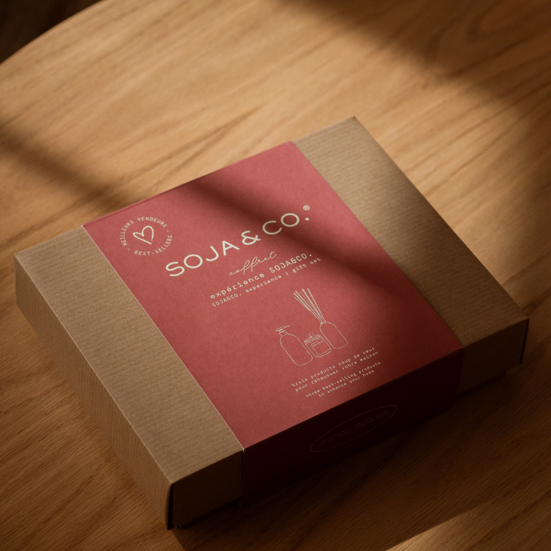Treat yourself or someone special to the ultimate SOJA&CO. experience with this curated wellness trio. This beautifully packaged gift set brings together three beloved bestsellers: a hand-poured 4 oz Pine + Cedar Bark candle, a 120 ml Eucalyptus + Grapefruit reed diffuser, and a luxurious 238 ml Lavender, Sandalwood & Vanilla hand soap. Each piece is lovingly crafted and assembled by hand in Quebec using exclusive, artfully developed fragrances. Ready to unwrap and enjoy—or gift with confidence.