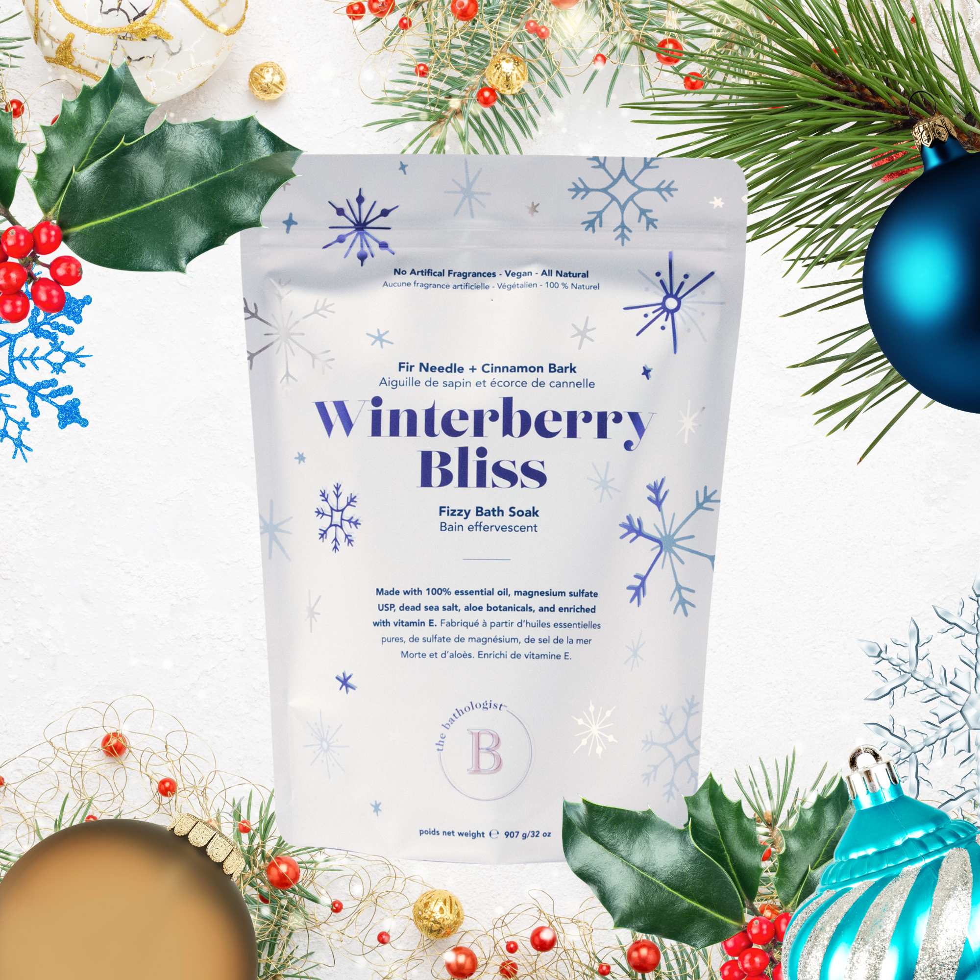 Transform your bath time into a winter wonderland with Winterberry Bliss—a fizzy bath soak that brings holiday magic straight to your tub. Bursting with the warm, spicy notes of cinnamon and the crisp freshness of fir needle.